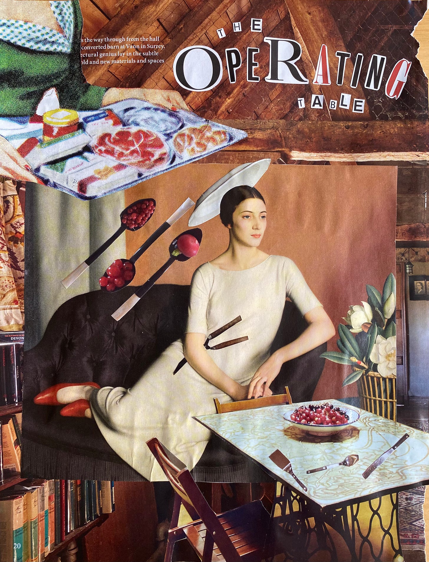 Every week since I’ve been collaging with friends, mainly in the evenings after a day of studying. I’ve refound my love and can’t let go. I even spent halloween collaging with my friends back home — me in casual reassembling attire and them dressed as Carrie Bradshaw and a bride, all three contributing stacks of magazines to rifle through! The electricity blew and we were left to candle light, I’d argue the spookiest collaging can get really.